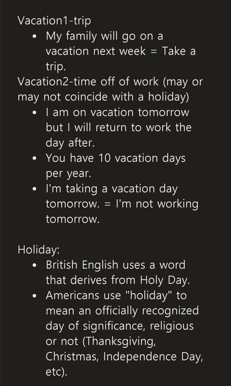 Cual Es La Diferencia Entre Holiday Y Vacation Holiday Vs Vacation Hinative